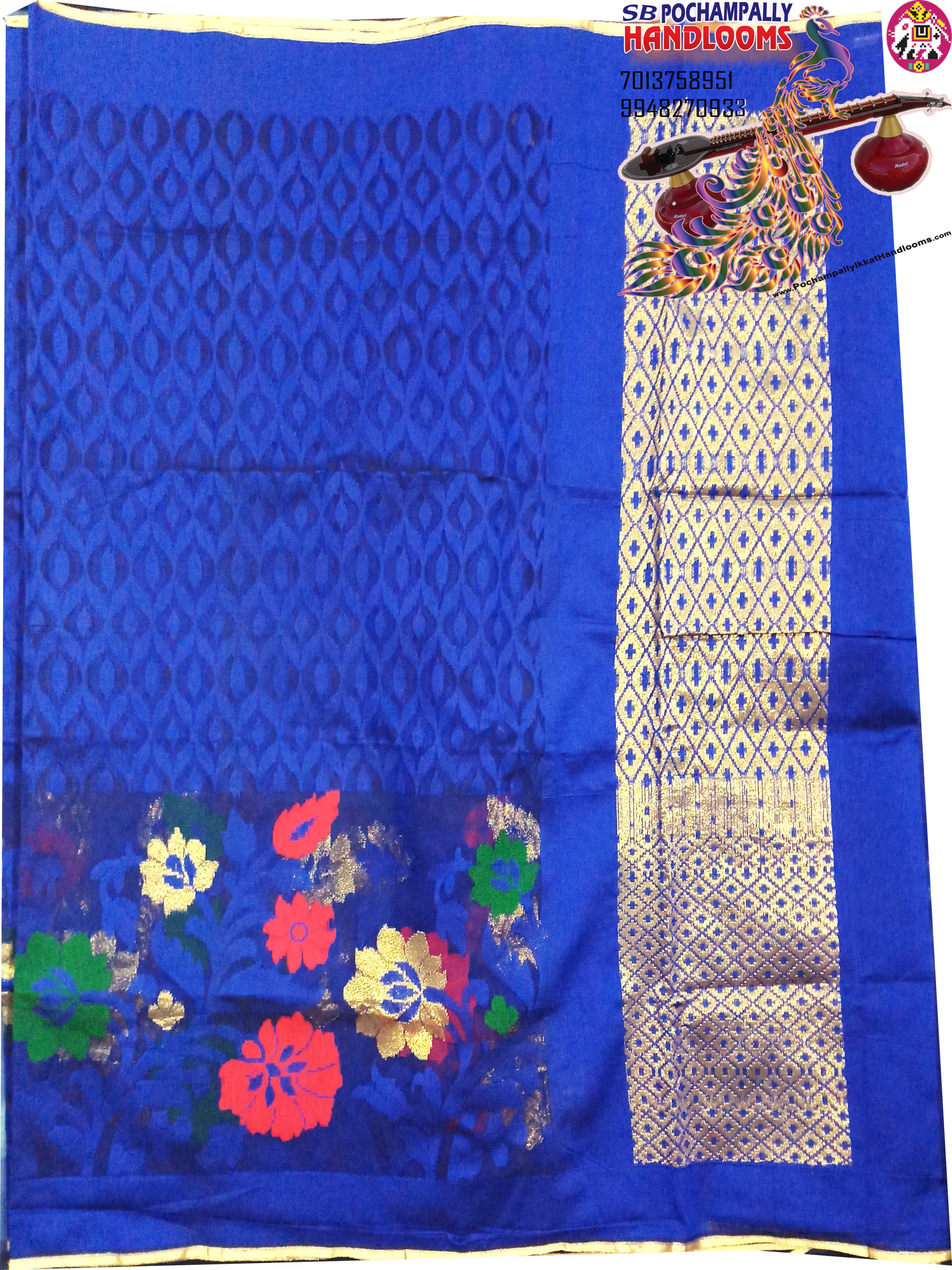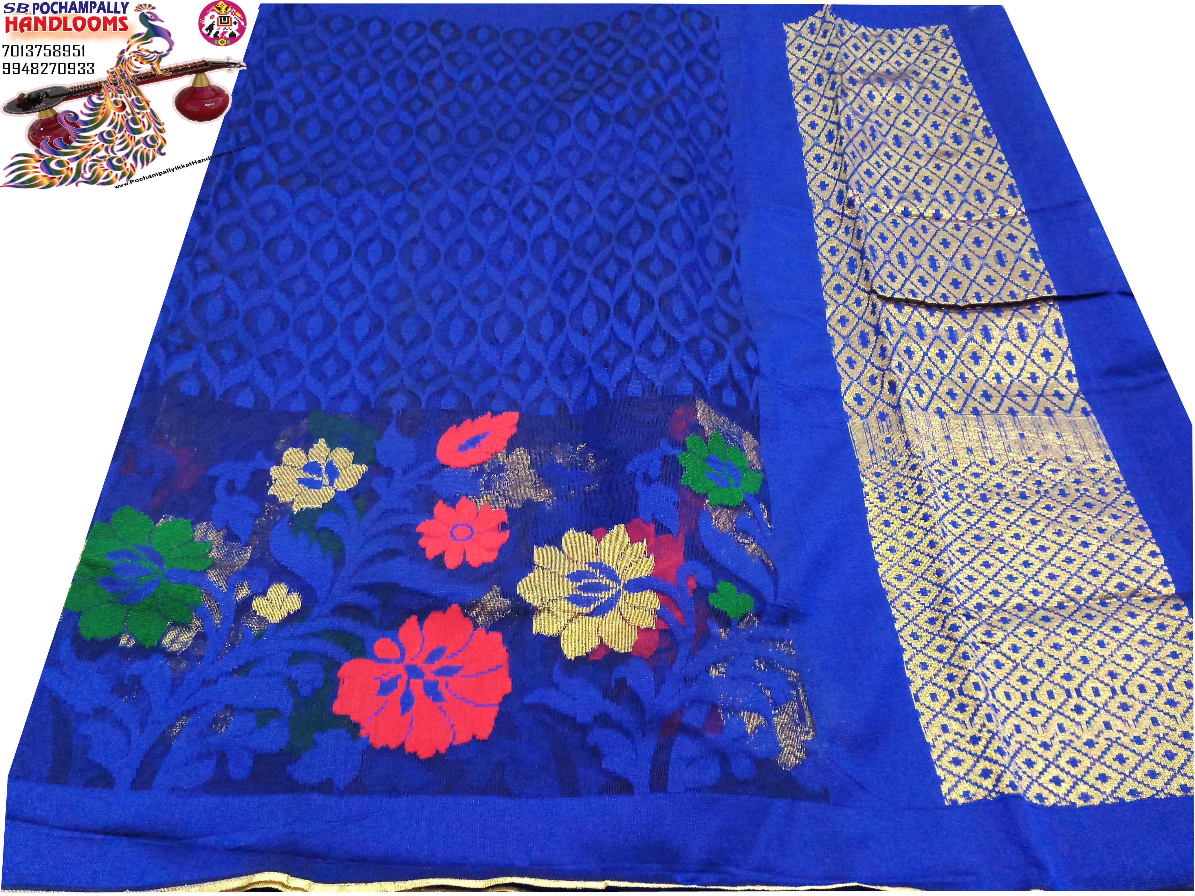 The Latest handloom floral design skirt border designer light-weight saree with blue self color small jari border