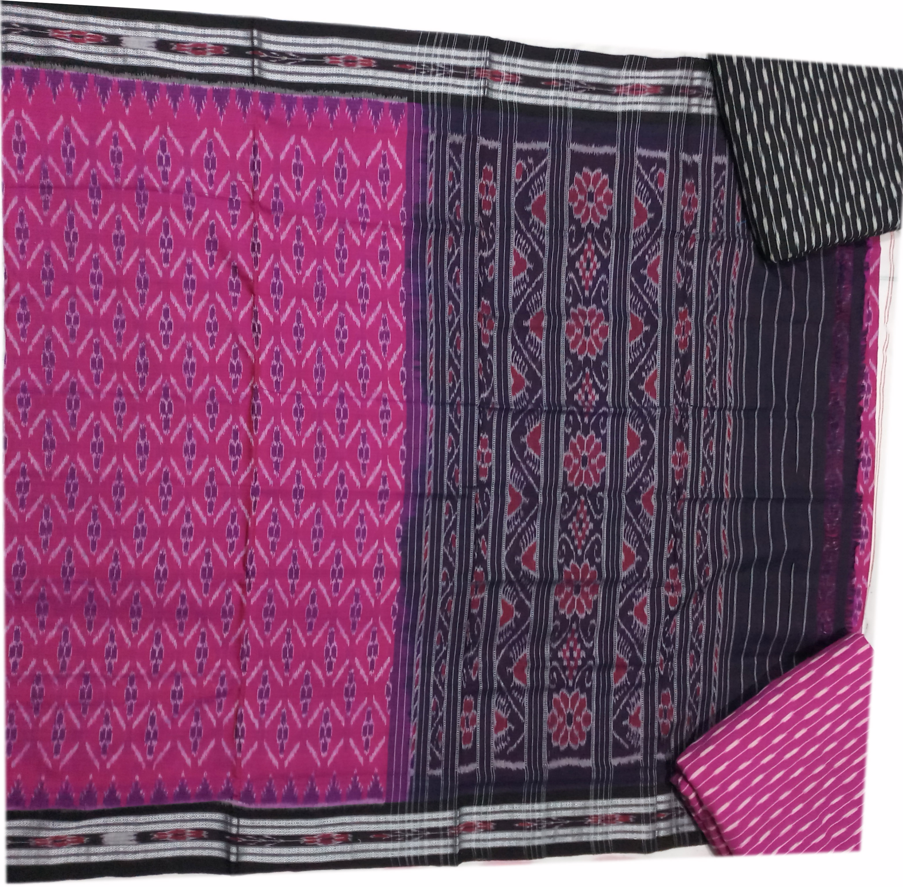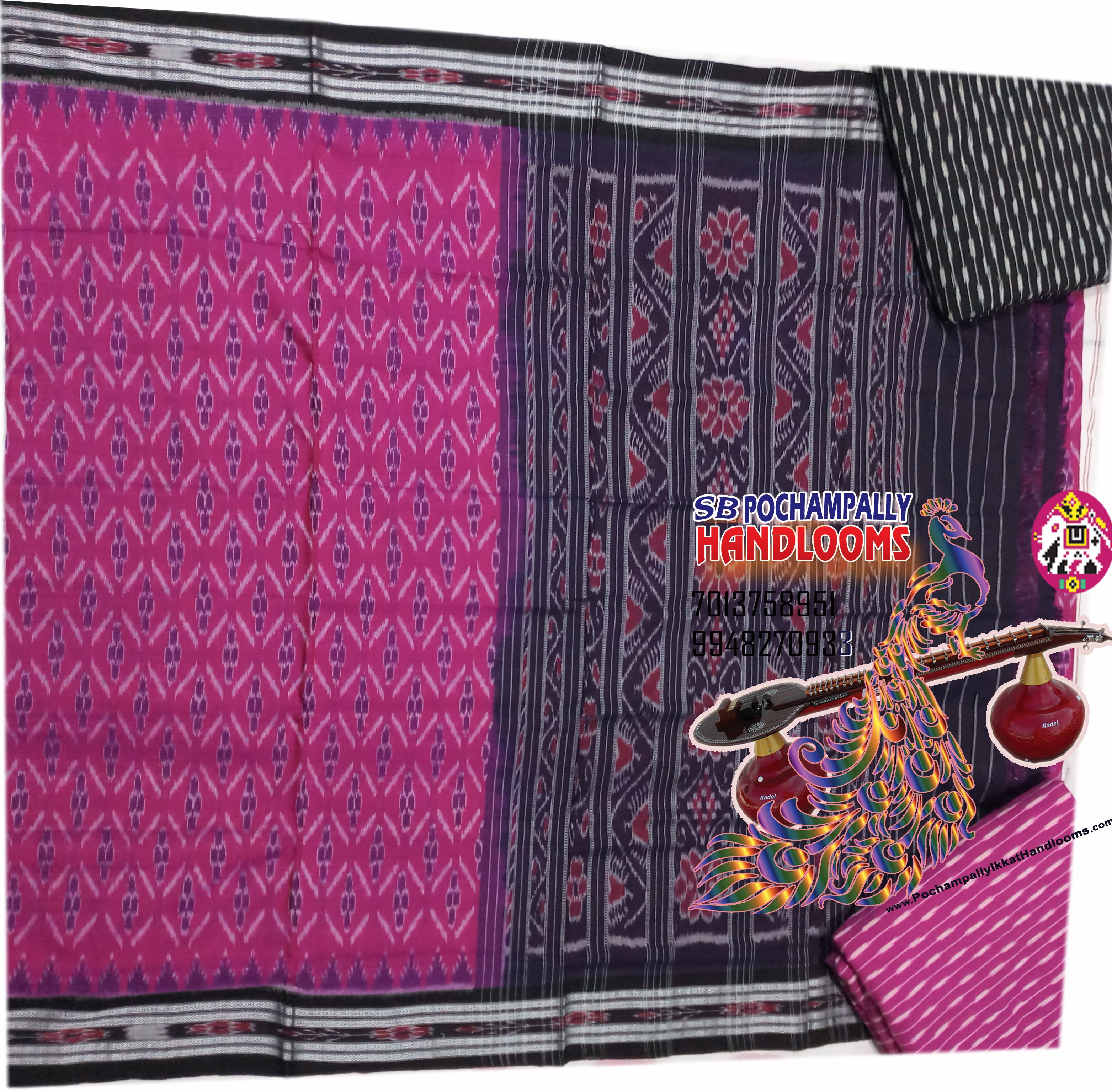 Pochampally handloom ikkat cotton floral full designer saree with pink black color combination special pallu design available in hyderabad