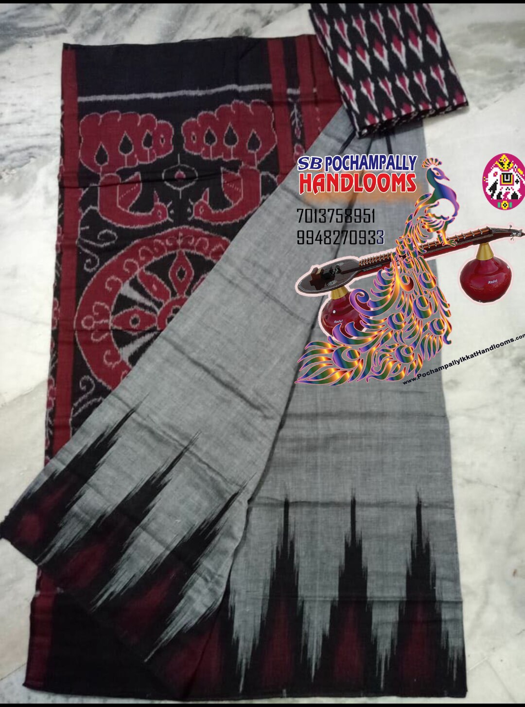 pochampally cotton sarees with big temple border special konark design pallu having ikkat fabric for cotton blouse in the best pochampally sarees dealers in hyderabad.
