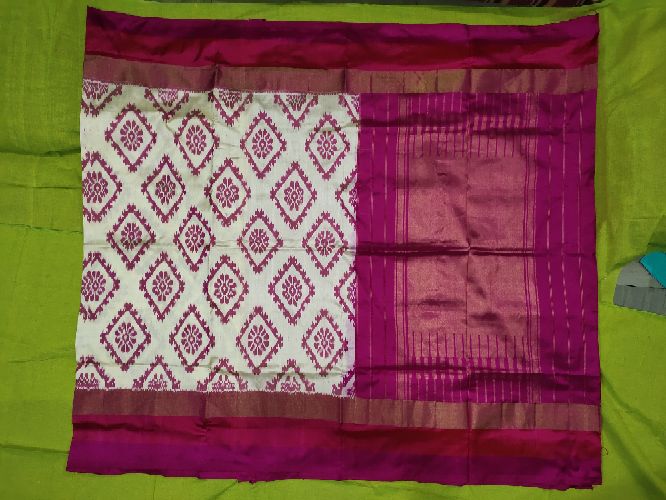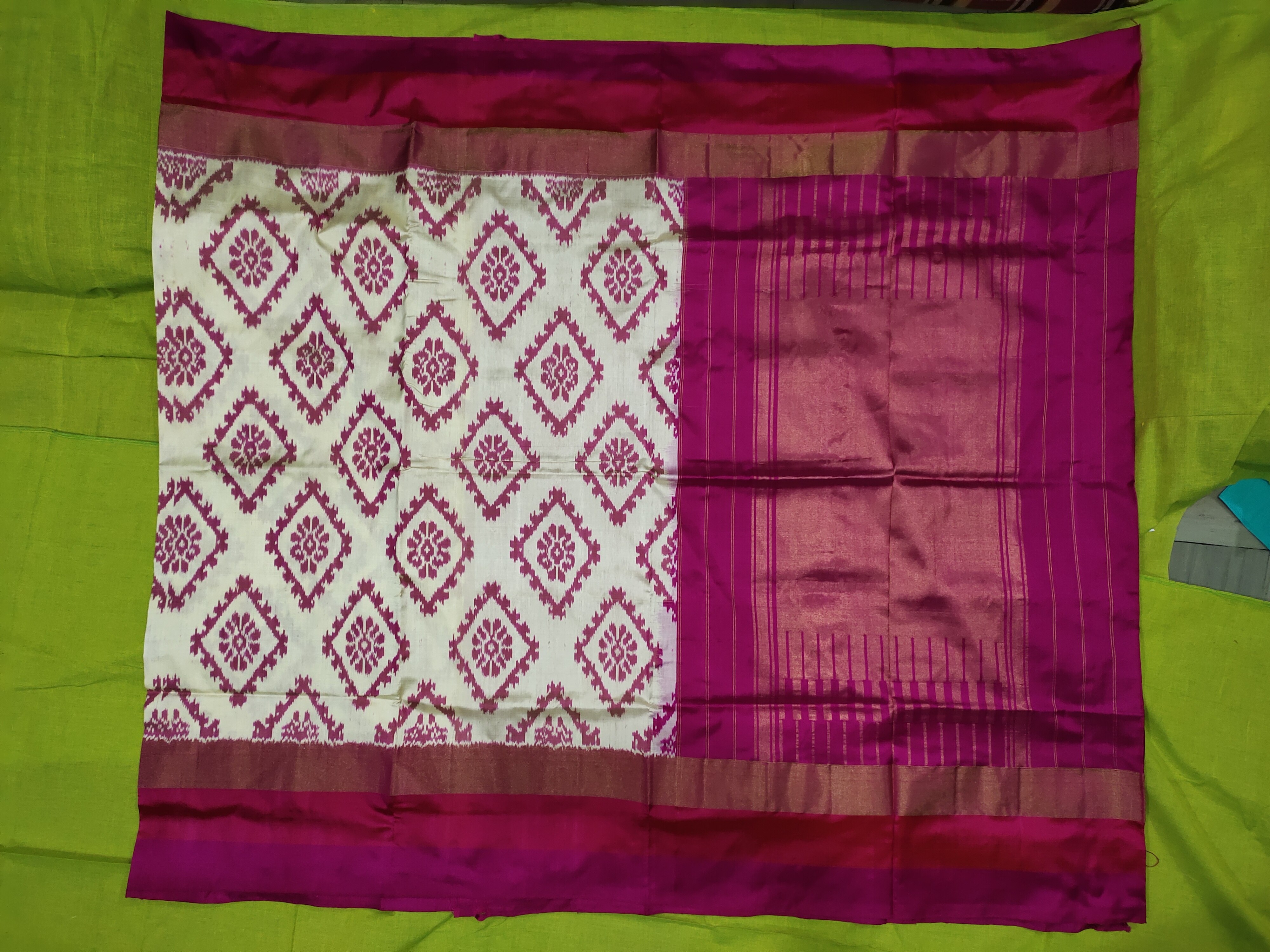Latest Ikkath silk saree with special diamond floral all over design tissue borders.